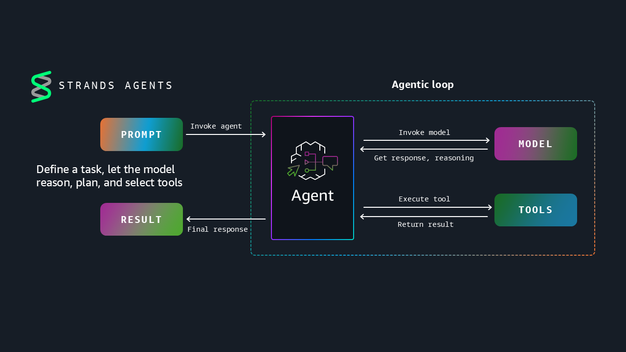 Strands Agents empowers you to create intelligent agentic systems that leverage reasoning models to make dynamic decisions and adapt to unexpected situations. You can now build agents in TypeScript, run agents on edge devices, steer agents through modular prompting, and verify agent performance with evaluations.