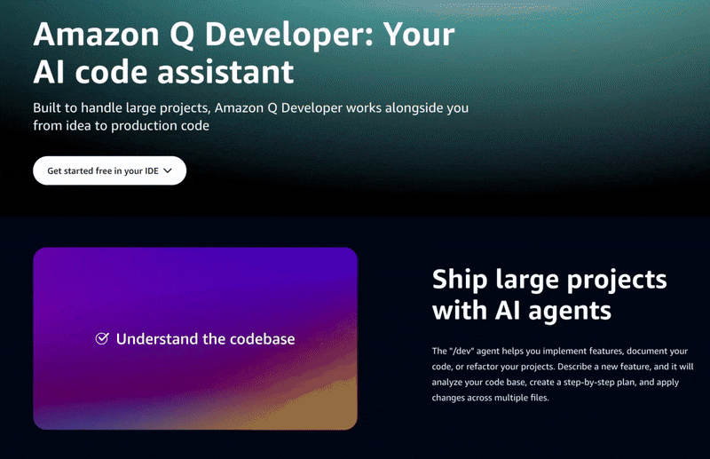Amazon Q Developer can handle your biggest projects. Write, test and review code with ease with an AI coding assistant by your side. Amazon Q Developer is built to take on ambitious projects, taking you from idea to production code.