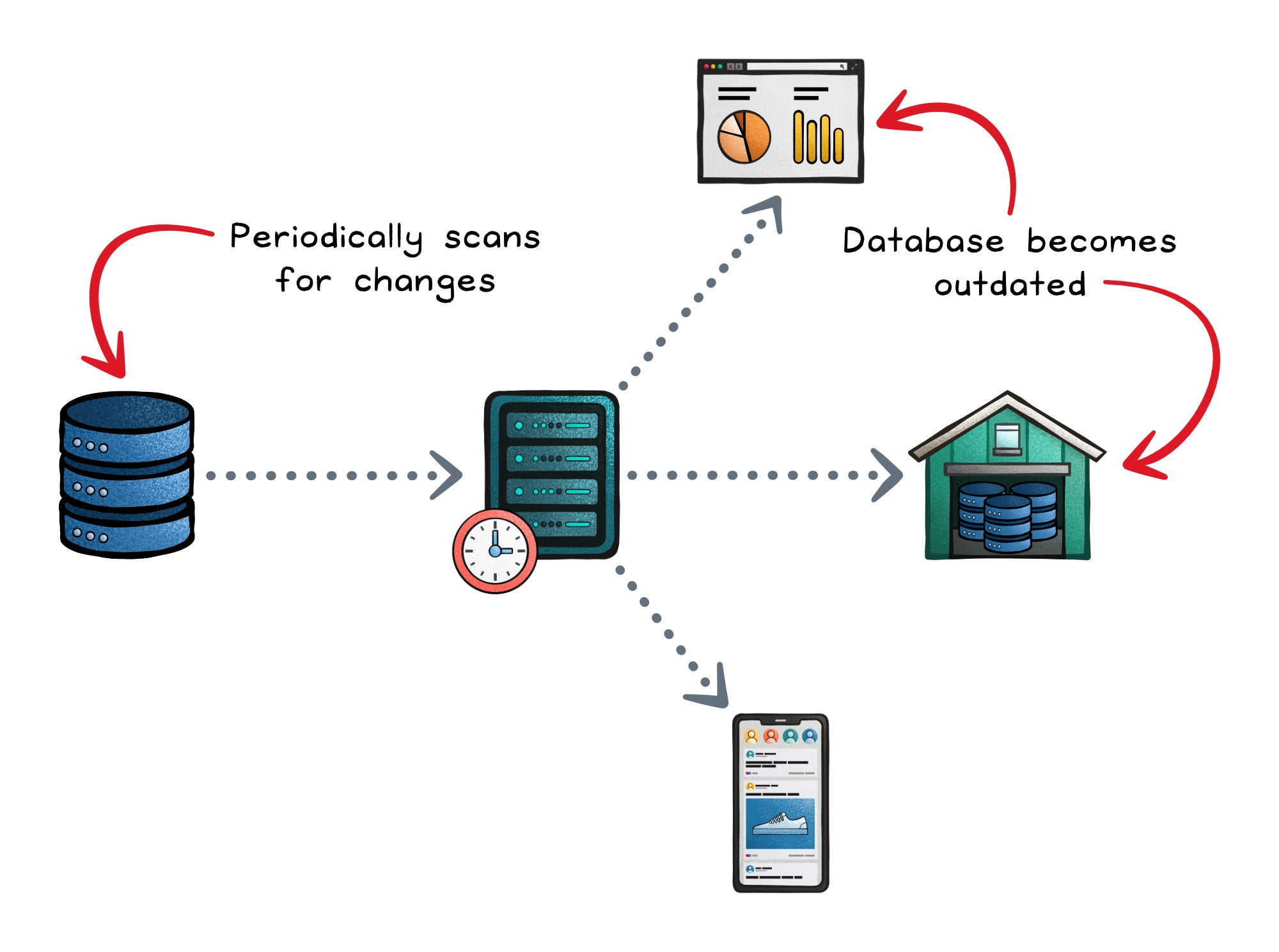 And as data grows, batch jobs become heavier: they re-scan entire tables, strain databases during load windows, and deliver snapshots already outdated by the next run.