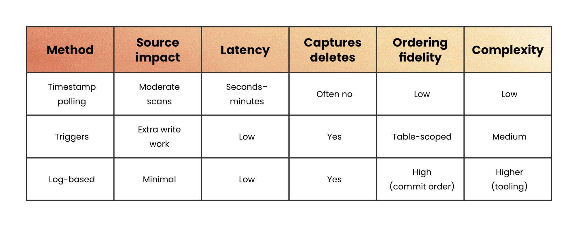 Understanding those trade-offs early helps you design CDC pipelines that stay reliable as they scale.