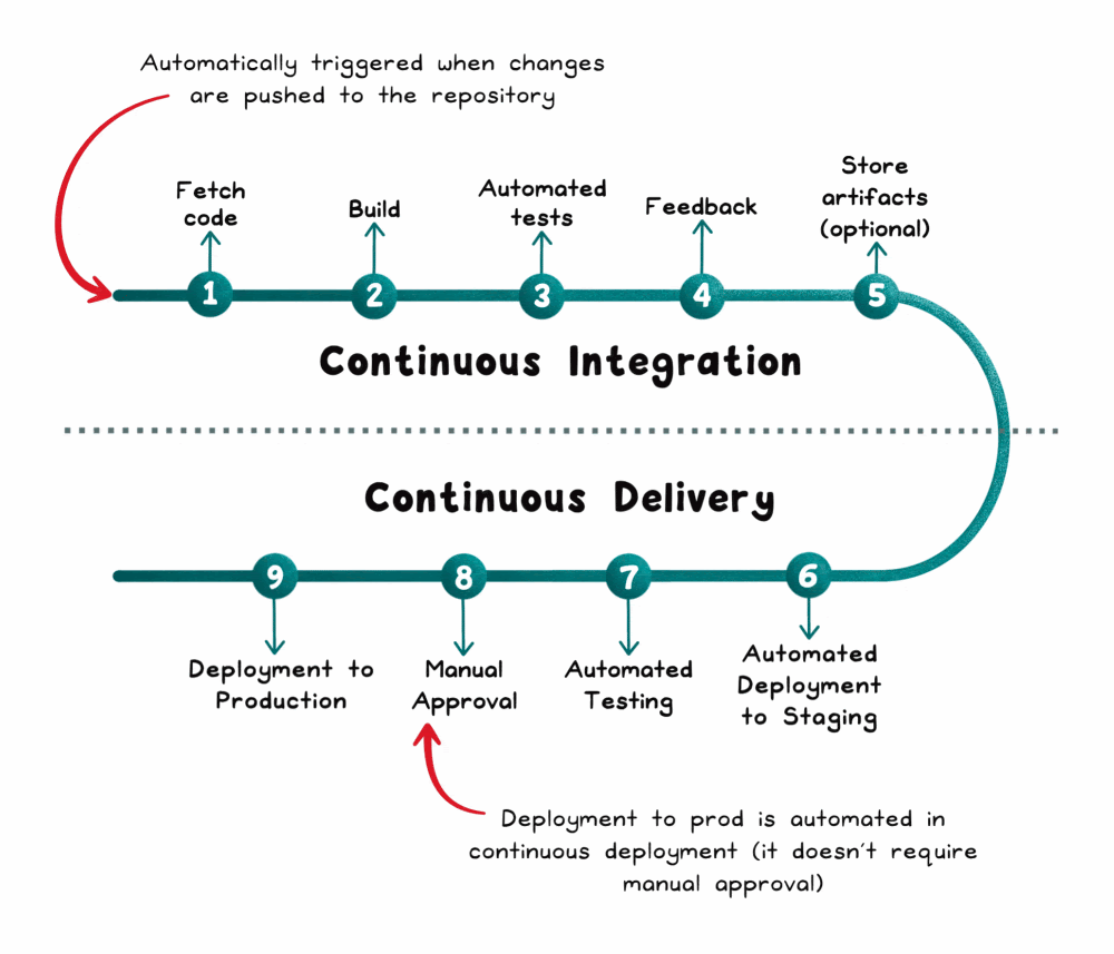 This approach allows for rapid, reliable, and automated software releases, streamlining the transition from development to deployment in production environments.