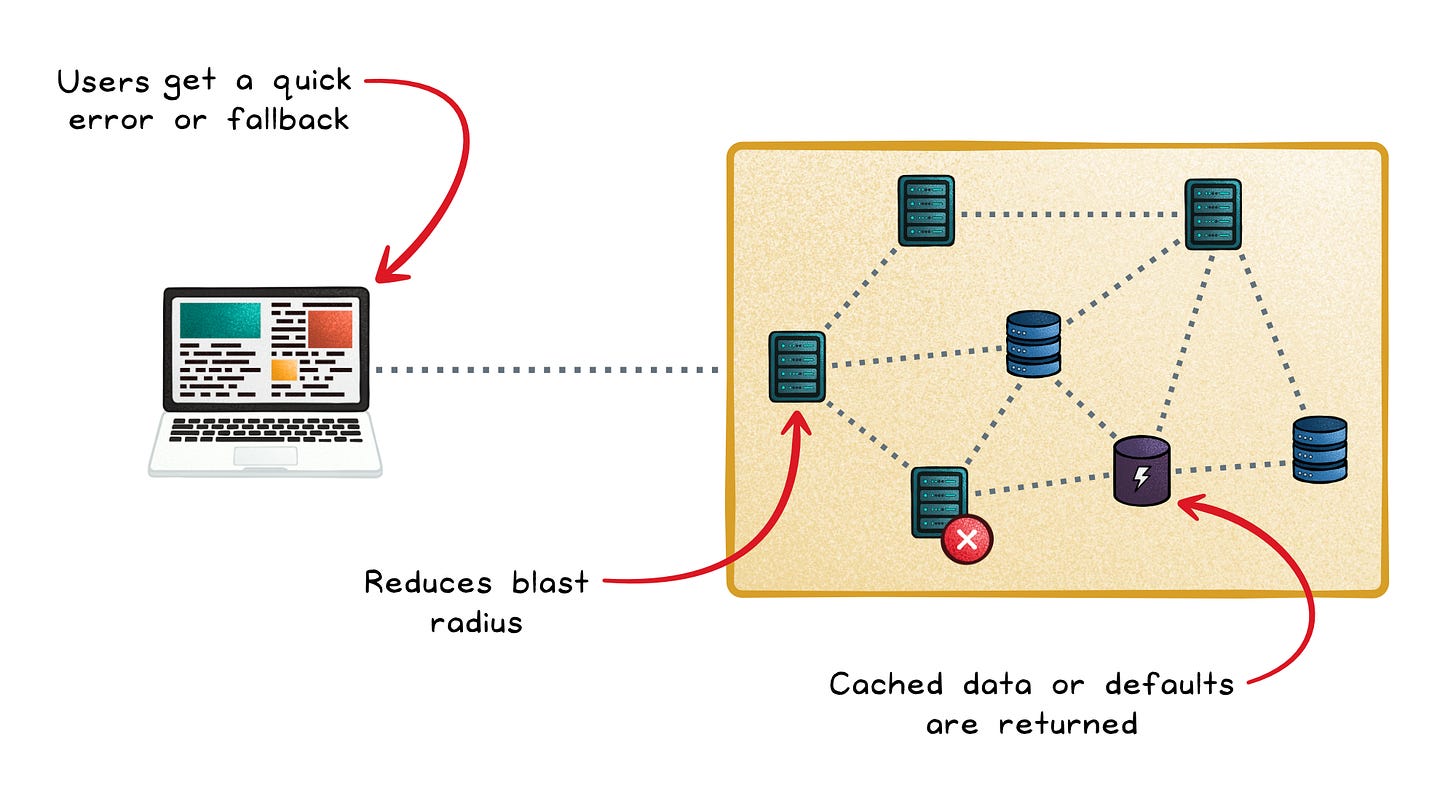 Fail fast → Users get a quick error or fallback instead of waiting through long timeouts.