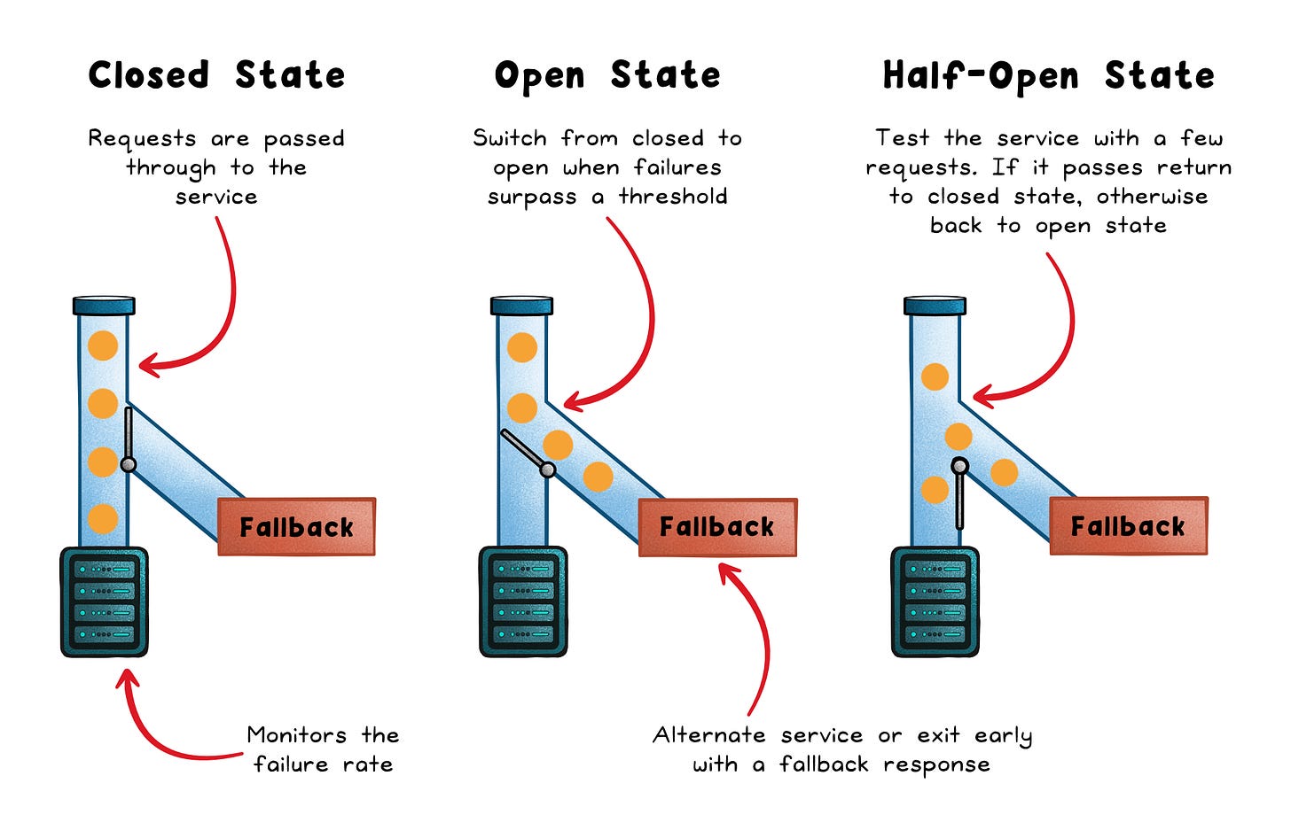 State transitions (Closed → Open → Half-Open)