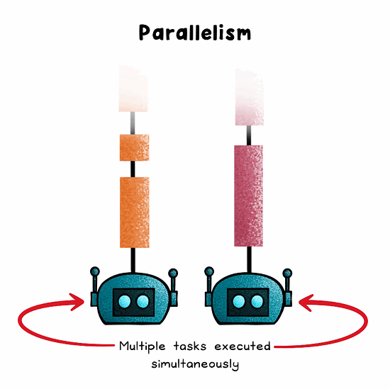 Parallelism distributes tasks across multiple CPU cores to run them at the same time, dramatically improving compute-bound performance.