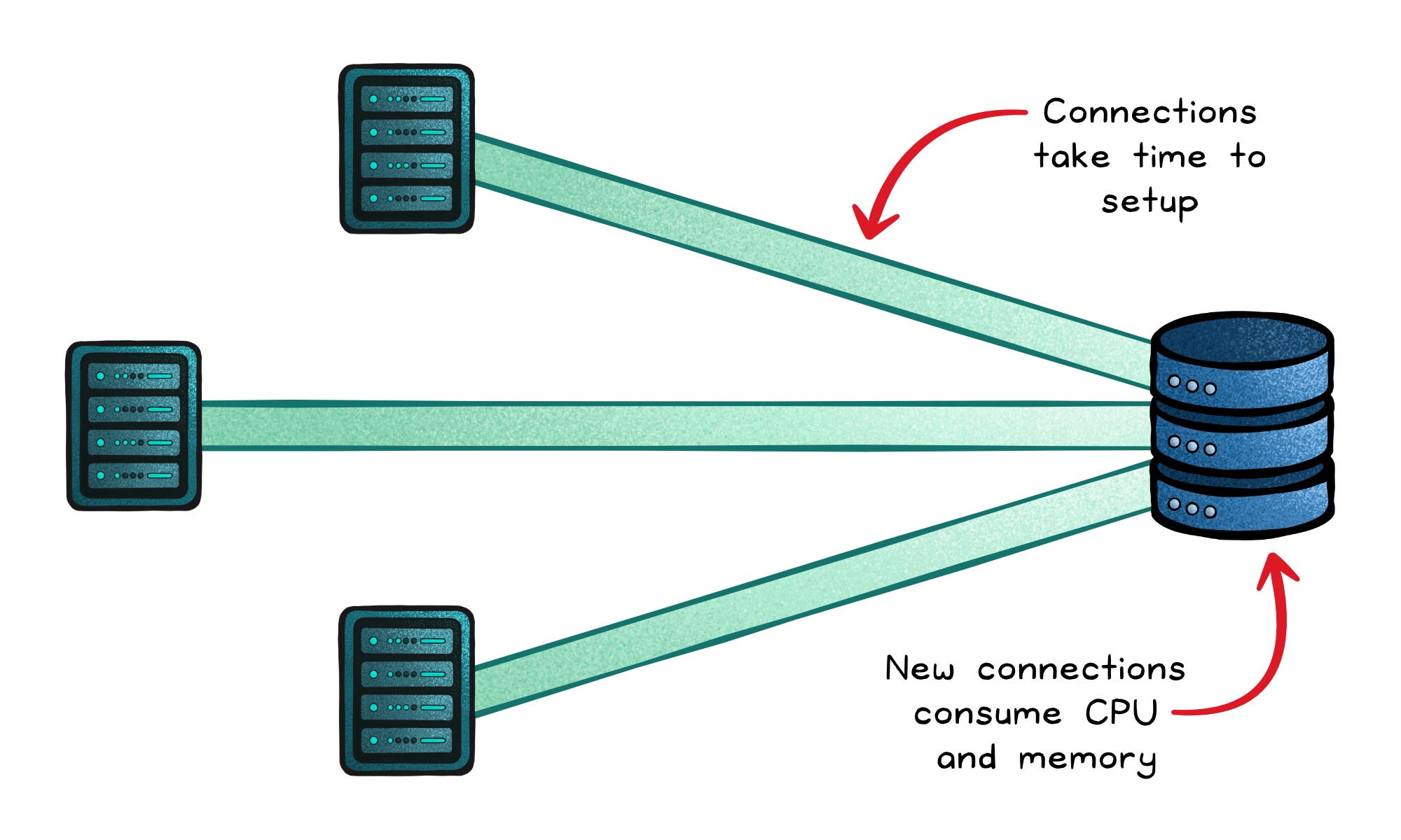 That’s what many apps do when they open a brand-new database connection for every request. Each one starts from scratch (handshakes, authentication, encryption) before any real work happens.