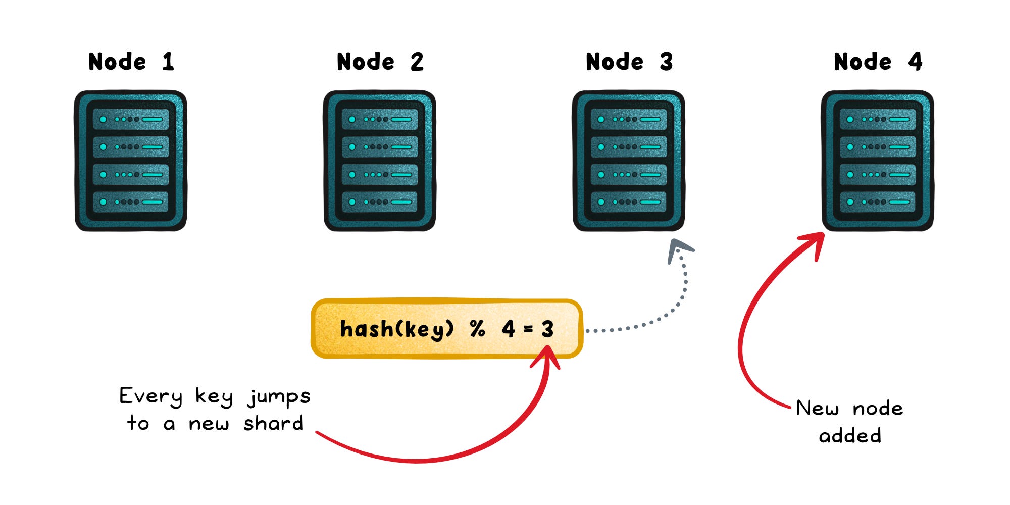 Distributed systems are designed to change: nodes fail, scale, and get replaced all the time. But this formula couples your data layout directly to the number of nodes (N). The moment N shifts, the entire mapping shifts with it.