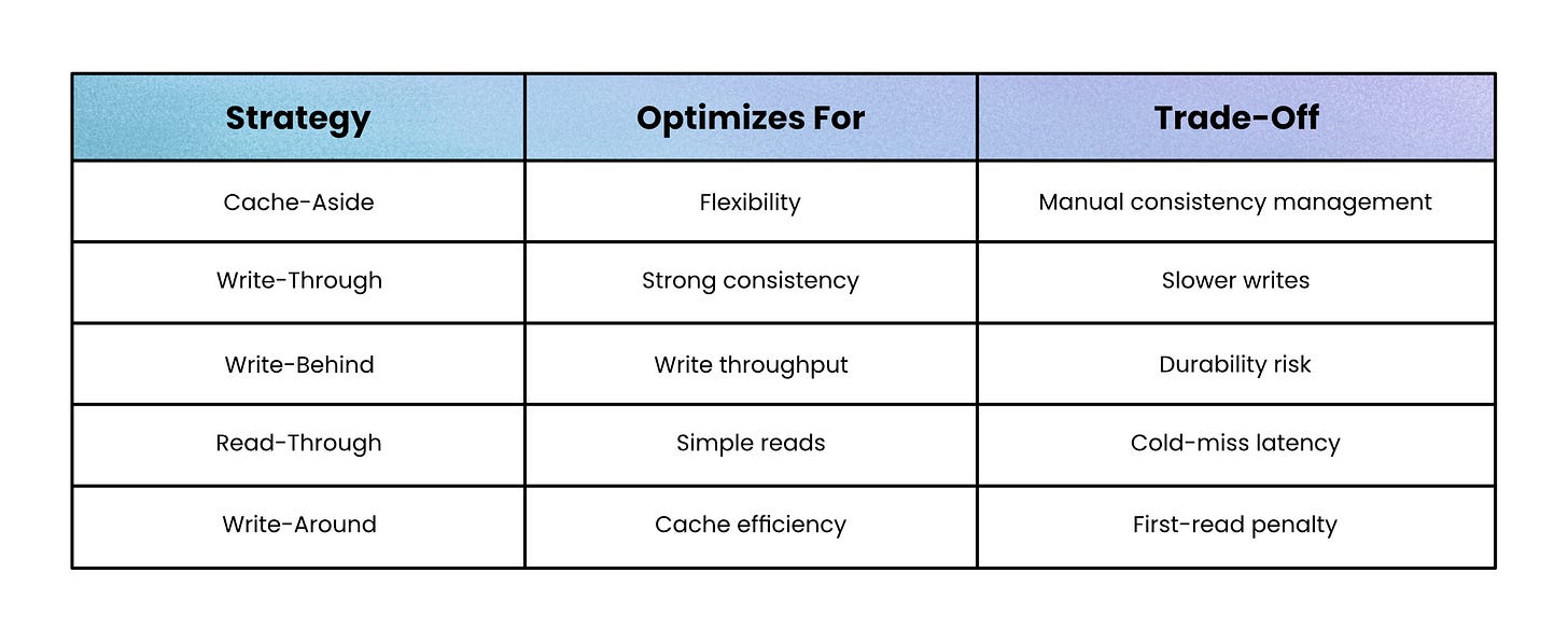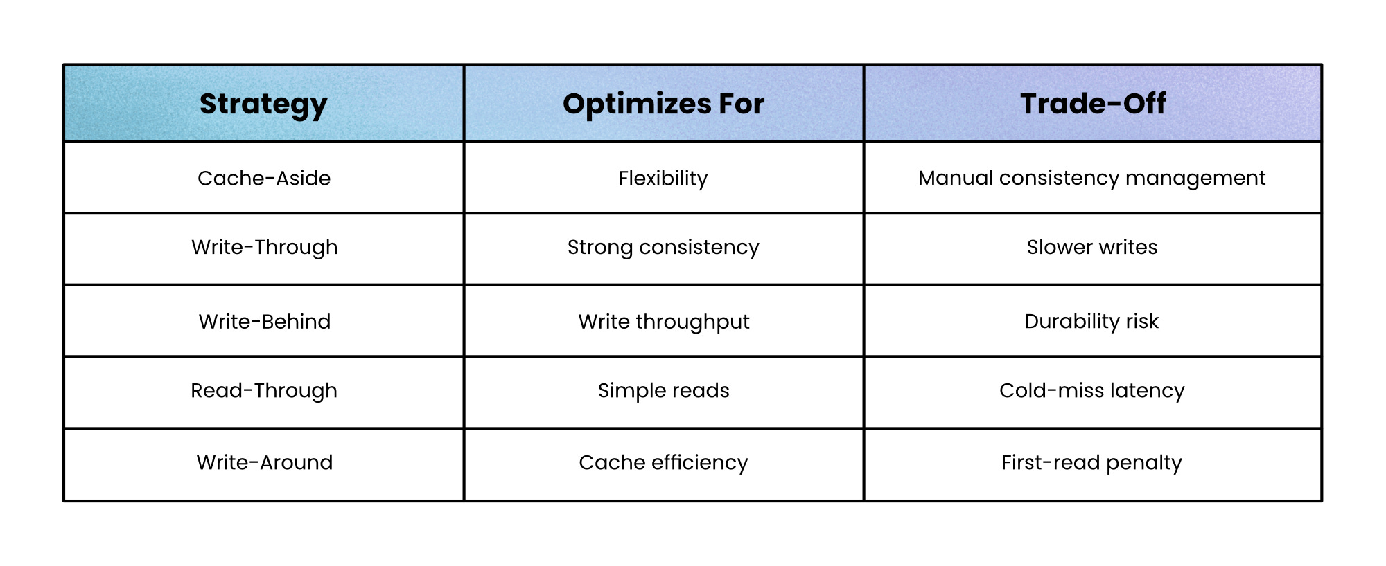 Each caching strategy comes with its own trade-offs. To decide which one fits your system, consider: