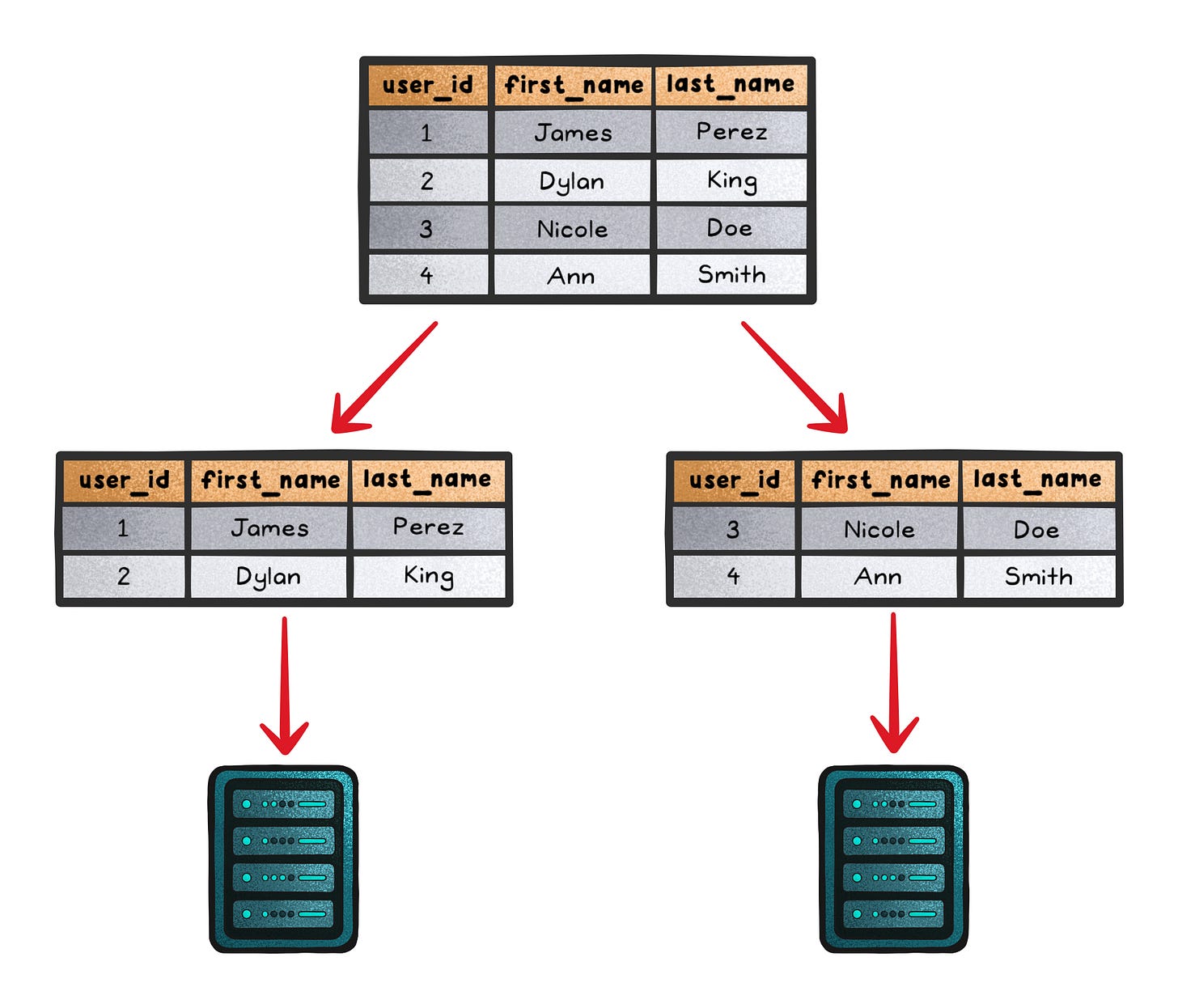 This approach differs from conventional scaling strategies like replication, which makes duplicate copies of data across several servers, and vertical scaling, which entails boosting the capacity of an already-existing server.