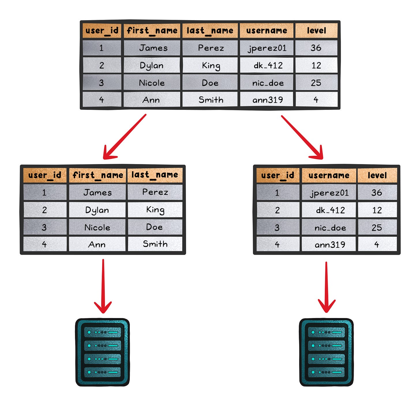 Vertical sharding involves dividing a database into smaller sets based on the table. This method separates different tables or groups of tables into distinct databases, with each shard holding a subset of the table data.