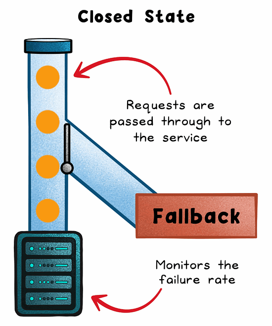 Without a circuit breaker, threads pile up, queues overflow, and your entire service grinds to a halt.