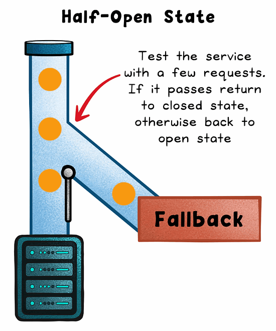 After a cool-down period, a few trial requests are allowed through. If they succeed, the circuit closes. If not, it reopens.