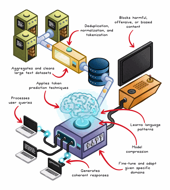 Let’s peel back the layers and walk through how LLMs go datasets to generating coherent, context-aware, useful outputs.