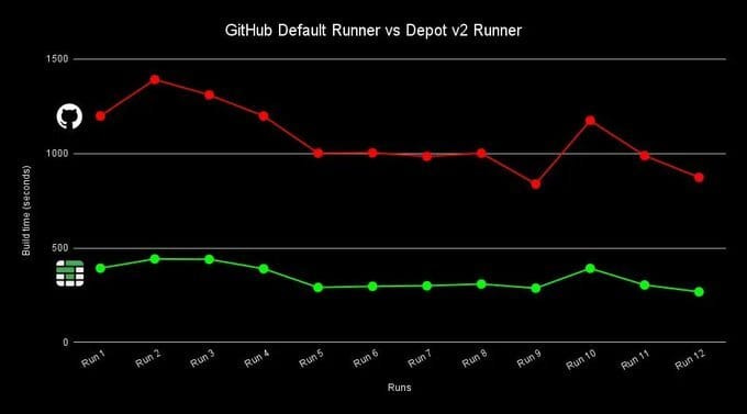 Up to 300% faster execution, and half the costs! I’ve been very impressed with Depot. And switching from the GitHub default runner to the Depot runner is super easy and quick (takes 2 minutes). Sign up today!