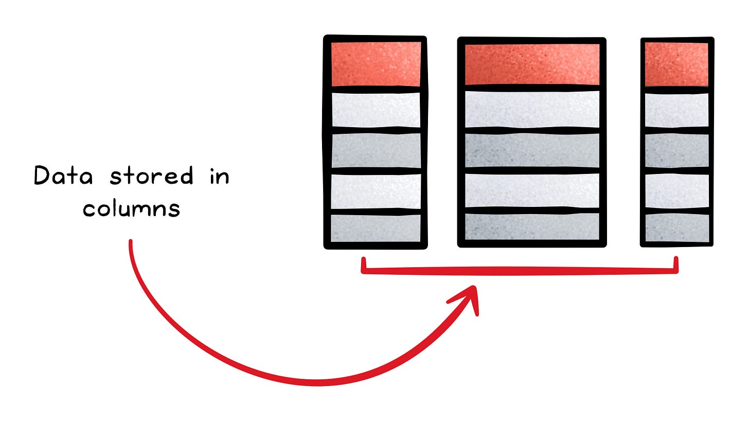 Columnar databases, in contrast to traditional row-based relational databases, store data in columns rather than rows.