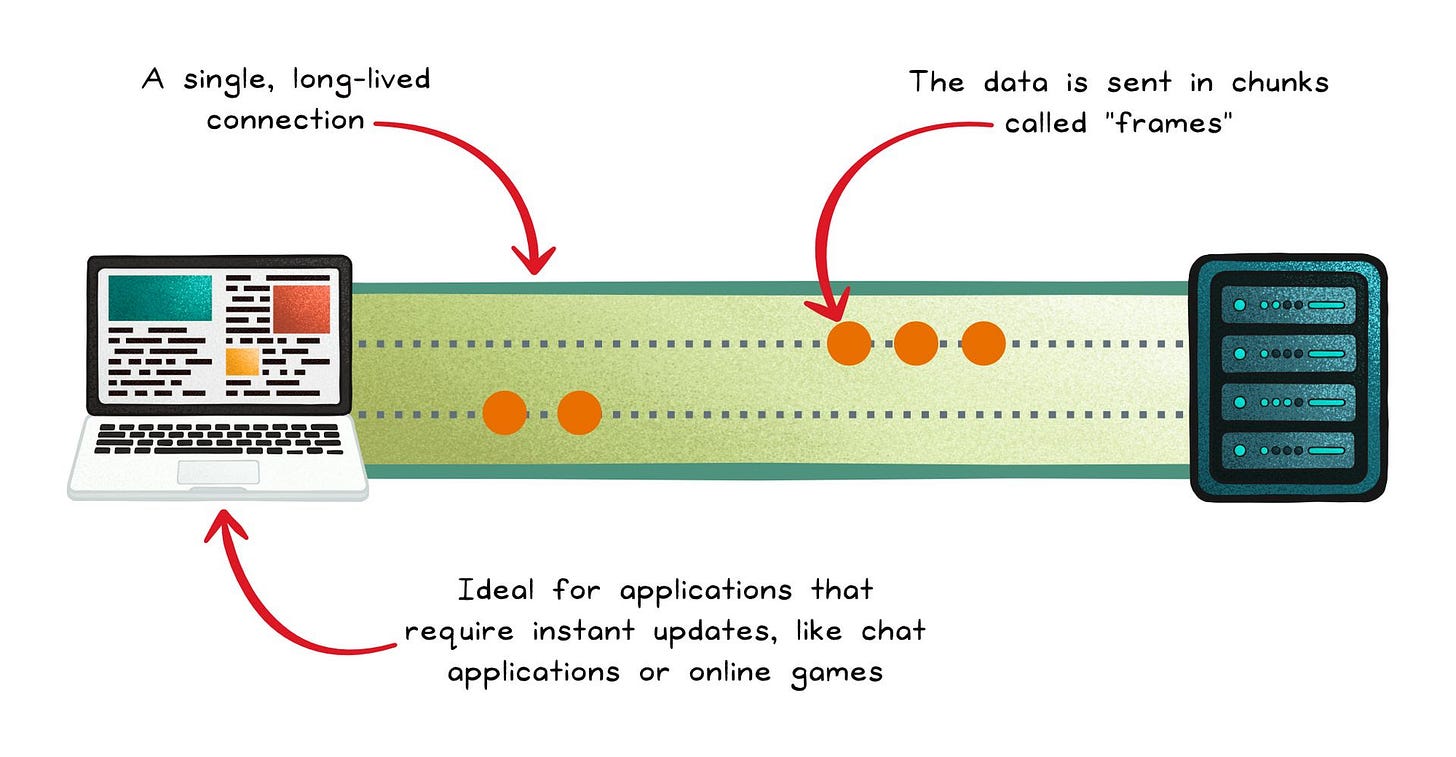 HTTP is reliable for fetching pages and APIs, but it only delivers data when the client explicitly asks for it. That’s wasteful when you need frequent, small updates or server-initiated events.